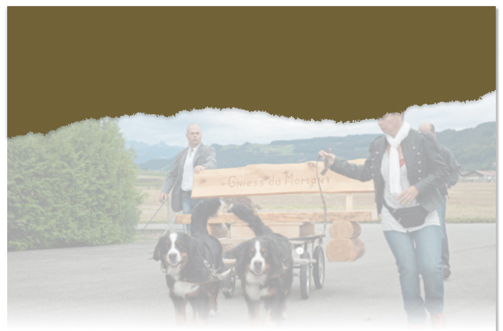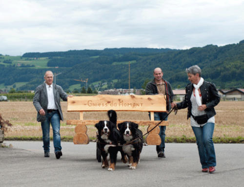 Da dieses Geschenk klein und bescheiden war, aber trotzdem zu gross und zu schwer, um dieses ihm einfach so zu überreichen, übernahmen diese Aufgabe meine Bernersennen mit ihrem Wagen.