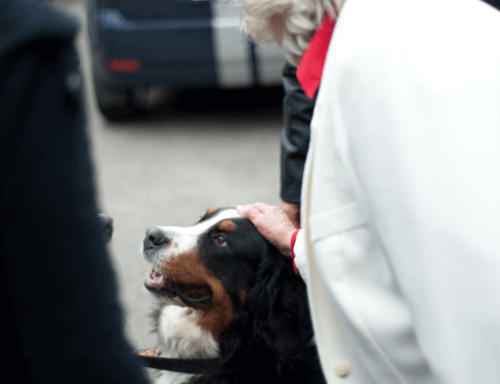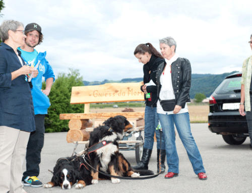 Da dieses Geschenk klein und bescheiden war, aber trotzdem zu gross und zu schwer, um dieses ihm einfach so zu überreichen, übernahmen diese Aufgabe meine Bernersennen mit ihrem Wagen.
